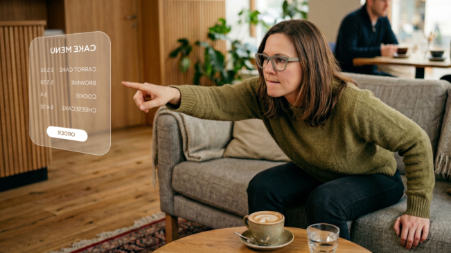 If watching a video projected at 1+ meters away is fine, what about all the interactions happening up close? What about clicking on menus? Reading text, charts? Moving pieces on a board game? If the content is placed at 1+ meters, what would the experience be like, and how would the user’s interaction look from an external perspective? Extending arms straight in front or using hand-gesture control (via a wristband) is either socially problematic or simply unnatural, in contrast to direct manipulation. To ensure the best AR experience, all interactions should happen where they naturally occur in the real world.